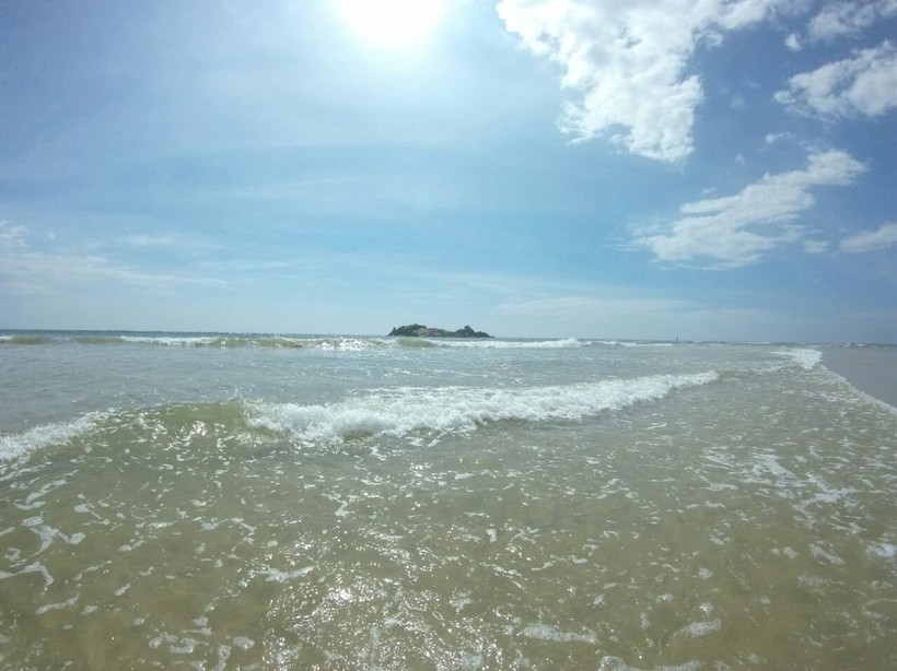 Пляж в Берувелле носит гордое название «Золотая миля». Честно говоря, меня он совсем не впечатлил. Широкая песчаная полоса окаймлена стройными рядами пальм. Вот, собственно, и все. Для серфа гребни слишком слабые (лагуна защищена рифом), но и купаться не комфортно, волны отвешивали увесистые оплеухи.