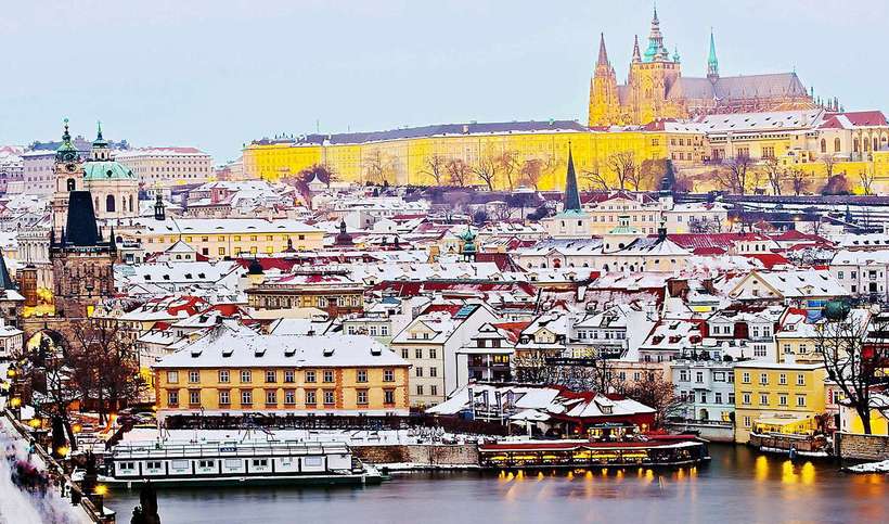 Зимой в Праге, по сравнению с Россией, весьма тепло, около нуля градусов средняя температура.