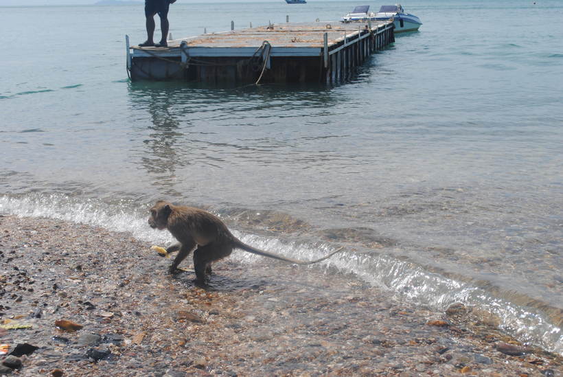Впрочем, иногда к берегу и впрямь приносило всякий мусор. Тогда мы шли в порт Паттайи и брали билеты на острова. 15 минут на корабле и ты нежишься на белом песочке, смотря на лазурное море. А когда совсем было скучно, мы ездили знакомиться с милыми дикими обезьянками, которые оккупировали себе целый остров возле Паттайи.
