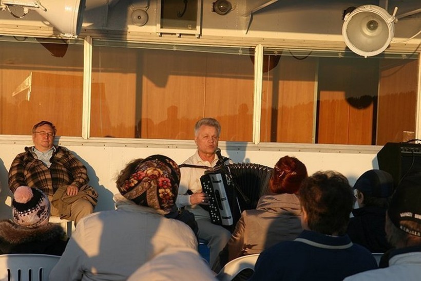 В это валаамское путешествие на теплоходе мне крайне приглянулась организация досуга. В определенное время на палубу вышел дядька с гармошкой, затянул душевные песни.