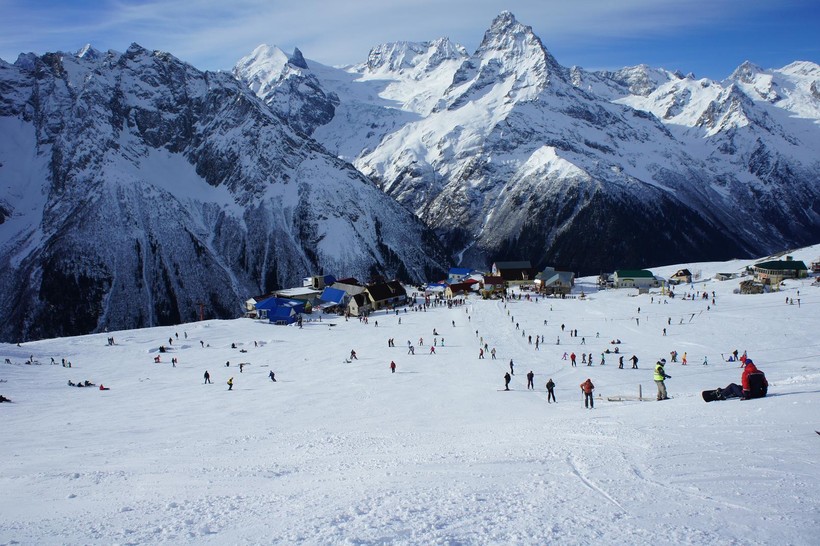 - Домбай или Архыз. Эти курорты находятся относительно недалеко друг от друга. Трассы тут отличные. Разница в том, что в Домбае жилье и питание вам обойдется дороже, да и народу там всегда больше. Чтобы сюда добраться, вам сначала необходимо долететь до Минеральных Вод, ну а дальше добираться на автобусе или такси.