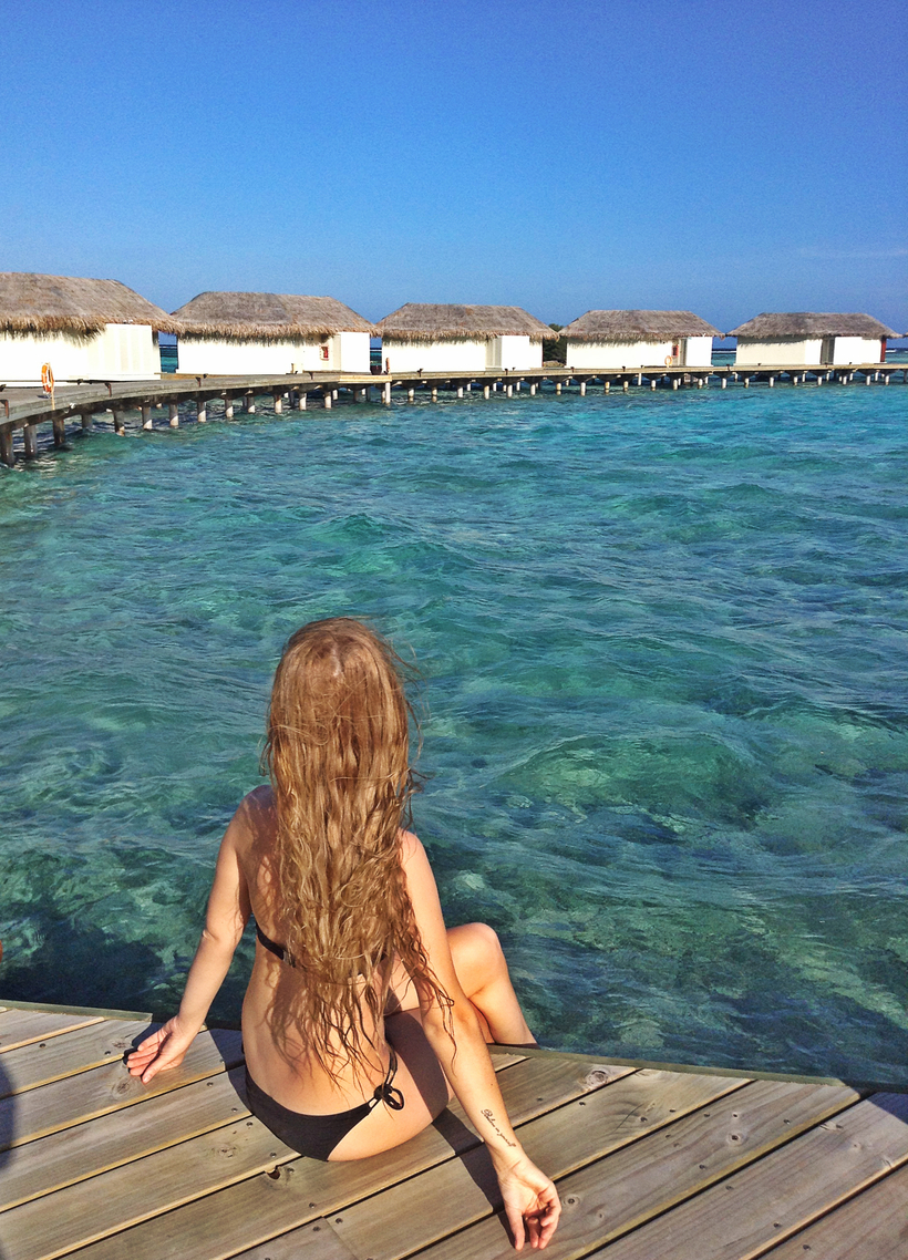 Отель я нашла очень быстро. Он мне сразу понравился не только ценой, но и красивыми фотографиями территории и пляжа. Наш туроператор сказал, что полёт будет длиться 9 часов, что не очень долго, если сравнивать, например, с Доминиканой. Прогноз погоды нас порадовал сразу. Дождей по прогнозу не было. Благодаря нашим друзьям, которые уже были на Мальдивах, мы узнали, что необходимо взять с собой помимо фотоаппаратуры и купальных принадлежностей. Самое главное — это маска для снорклинга. Мы купили маску и ни разу не пожалели. На самом деле подводный мир на Мальдивах отличный. Много интересных рыб, кораллов.