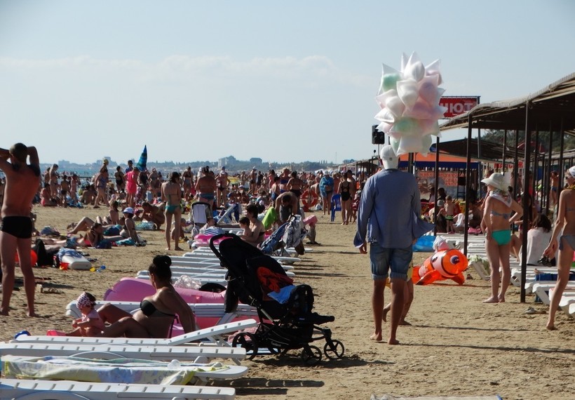 Я не люблю купаться на муниципальных пляжах. Каждый день посещала более малолюдные и отдалённые места. «Белый пляж» понравился развитой инфраструктурой. Здесь будет весело людям всех возрастов. Для детей построены разнообразные аттракционы, огромные батуты, а для взрослых открыты точки прокатов водных развлечений. Потратьтесь на аренду зонтика, чтобы не обгореть. В июле жарко — 31-34°C, поэтому советую проводить время не только под палящим солнцем, но и в теньке на удобном лежаке. В море охладиться не получится. Температура морской воды достигает 26-27°C.
