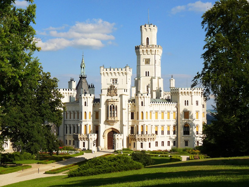 - Замок Глубока-над-Влтавой. Это место стоит увидеть хотя бы потому, что оно считается одним из самых красивых в Чехии. Замок находится на юге страны, примерно в полутораста километрах от Праги. Первая постройка на этом месте возникла еще в тринадцатом веке. Потом его часто перестраивали, и сегодняшний вид он приобрел к концу девятнадцатого века. В замке можно увидеть комнаты, обставленные так, будто его владелец только что вышел на прогулку, а также там прекрасная коллекция картин и большая библиотека.