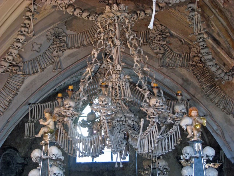 - Кутна-Гора. Это место привлекательно тем, что здесь находится Костница – самое большое место хранения человеческих черепов и костей. Только представьте: после одной из войн погибло такое количество людей, что их проще было не хоронить, а сбросить в одно место и через несколько десятилетий сделать такой «музей». Одновременно и жутко, и красиво.