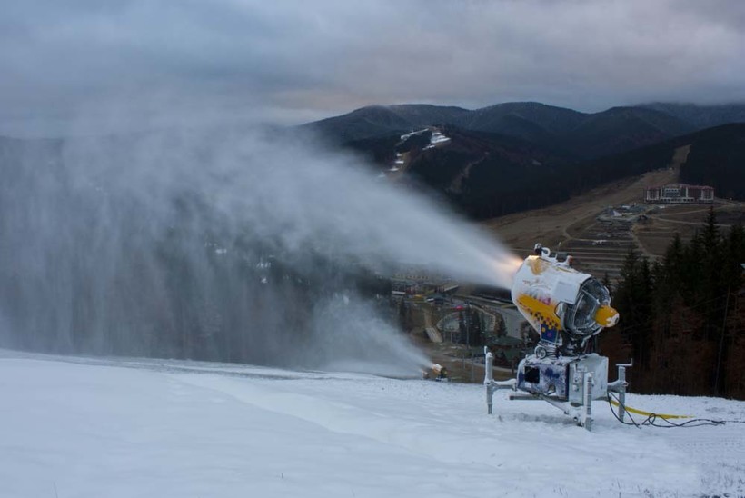 Всё аккуратно и чисто. Снежок искрится, лыжники шастают, подъемники курсируют. Если не хватает снега, то всегда на готове снежные пушки.