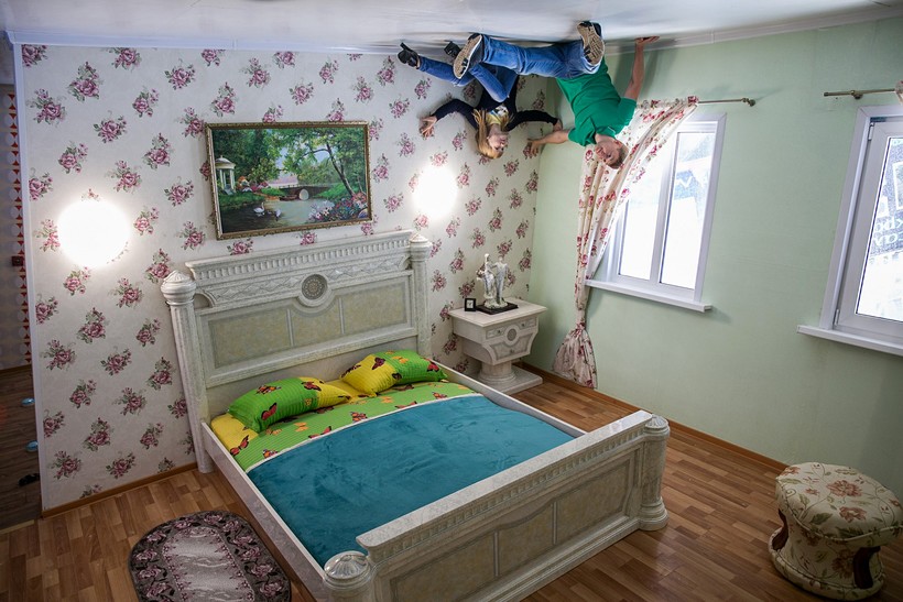 Если вы хотите немного оторваться от реальности, тогда аттракцион Дом вверх дном – то, что вам нужно, в этом доме абсолютно все перевернуто, а «потолок», на котором вы стоите, расположен с небольшим наклоном, что создает невероятное ощущение нереальности.