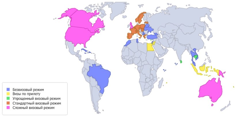 Также без визы можно рвануть почти в любую страну Южной Америки, страны СНГ и многочисленные азиатские страны, такие как Южная Корея, Вьетнам, Гонконг, Малайзия и т. д.