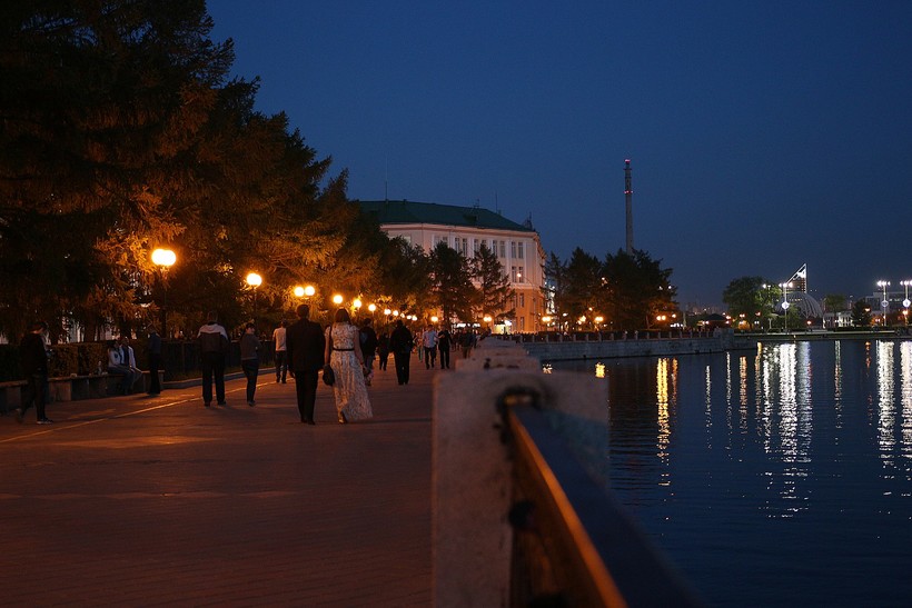 - Набережная. Очень романтичное и место Екатеринбурга. Отсюда открывается красивый вид на Урал, особенно, если вы пришли посмотреть на закат.
