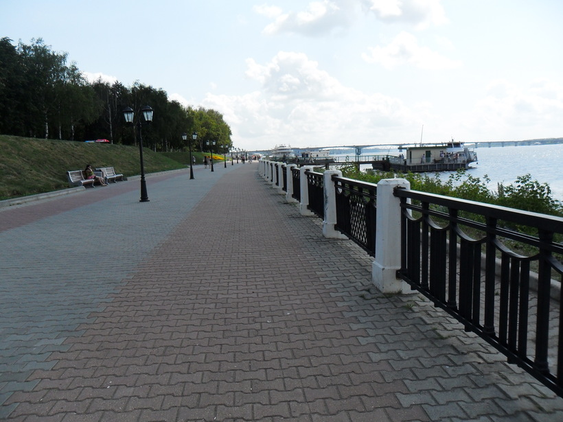 Набережная, скажем прямо, так себе - не оригинальная, но прогуляться можно, вид отличный на Волгу и дома на другом берегу. Сам берег пологий, между Волгой и самой набережной пространство непонятное – часть берега, заросшего травой.