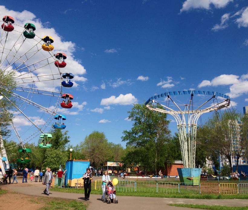 Есть в Оренбурге ещё один отличный парк, который называется «Тополя». Там любят проводить время не только дети, но и взрослые. Здесь можно покататься на различных аттракционах. Например, на колесе обозрения или американских горках.