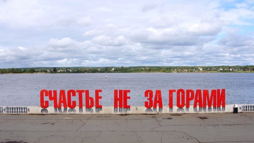 А прогулявшись немного дальше вдоль набережной, я обратил внимание на очень необычную вещь. Возле надписи «Счастье не за горами» была толпа желающих сфотографироваться. Очень оптимистические слова.