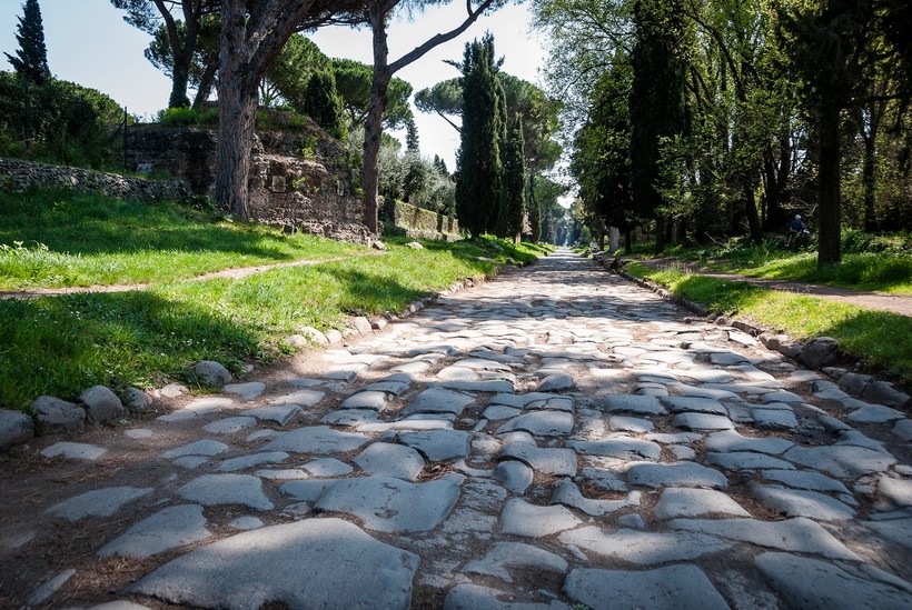 - Аппиева дорога. Первая «трасса» античности, вдоль которой можно наблюдать руины дворцов римской знати. Можно взять велосипед и проехаться по дороге с ветерком или же пройтись пешком и отдохнуть в теньке. Если решитесь пройтись (очень советую!), то начало дороги начинается у терм Каракаллы. Гулять там можно бесплатно.