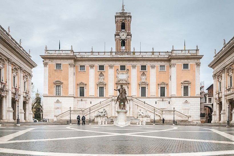 Первым делом попадаешь на площадь, к которой в свое время приложил руку сам Микеланджело Буоанаротти. И площадь действительно строит внимания, здесь же можно увидеть знаменитую статуи волчицы и маленьких Ромула и Рема, пьющих ее молоко.