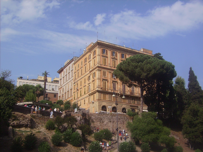 - Clivo di rocca savella. Прекраснейшее место практически рядом с Колизеем, закрыто от глаз вековыми деревьями. Устав от туристов и очередей, приятно оказаться в зеленом уголке, где старыми деревьями окутаны древние постройки.