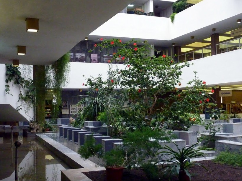 Сюда нужно взять паспорт, и вам выпишут разовый пропуск. Как бы странно это ни звучало, я уверена, что библиотека — одно из самых приятных закрытых мест в городе: внутри часто проводятся выставки, нижний этаж больше похож на постоянно действующий зимний сад с фонтанами, а на стенах развешены оригинальные работы современных художников.