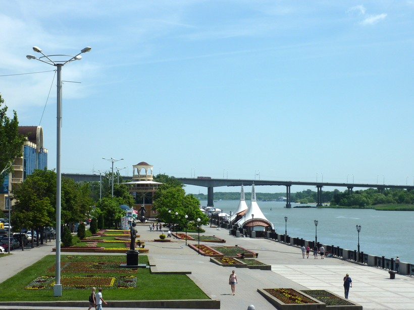 На Донскую Набережную можно идти гулять в любое время суток, но мне кажется, вечером она просто прекрасна. По всей набережной тянутся велосипедные дорожки, можно прокатиться на небольшом теплоходе, прогулка длится около часа. Есть кафе на воде и на суше, несколько литых памятников и знаменитая «Ростовчанка». А если попасть в нужное время, можно увидеть танцующиефонтаны — удивительное зрелище!