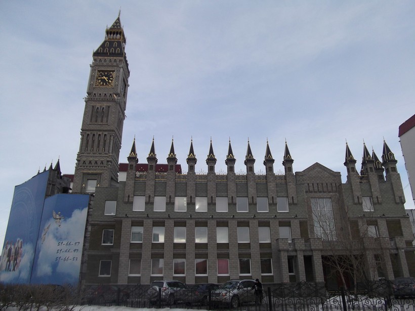 А еще в таком северном городе, как Сургут, можно увидеть кусочек настоящей Англии. В 2004 году появился Сургутский Биг-Бен — это здание городской школы изучения иностранных языков. Точной копии с тем Биг-Беном нет, но отсылка более чем очевидна. Даже часы сделаны в Великобритании и являются точной копией настоящих, но в три раза больше оригинала. С наступлением темноты включается подсветка и во время боя часов возникает волшебное ощущение. Говорят в этот момент нужно загадать желание и оно обязательно сбудется.