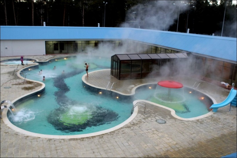 Мне посоветовали посетить «Верхний бор». Этот замечательное место находится в каких-то пятнадцати километрах от города в сосновом лесу возле озера Кривое. Источник очень полезен при хроническом переутомлении, но и для профилактики не помешает поваляться в бассейне с температурой +40 градусов.
