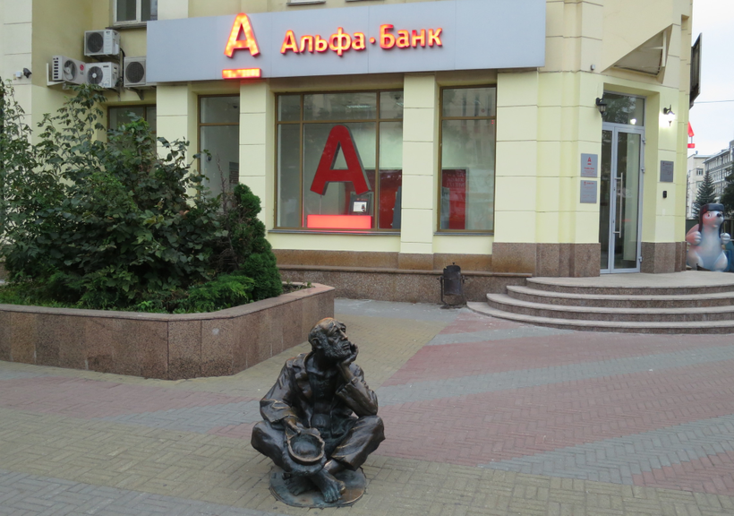 - Ул. Кирова, эдакий местный «Арбат», весьма богата забавными медными скульптурами, среди которых особенно хочется выделить «Профессионального нищего». Отказать просящему взгляду просто невозможно! Особую пикантность обстановке придаёт «Альфа-Банк» за спиной попрошайки.