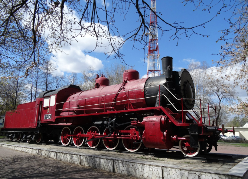 - Паровоз «Красный коммунар» между ДК Железнодорожников и парком им. А. С. Пушкина. Чистенький, лазить можете смело.