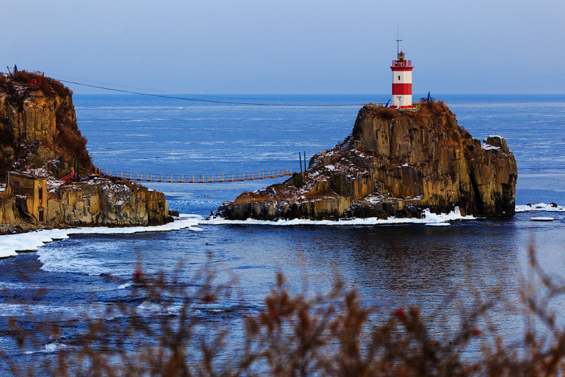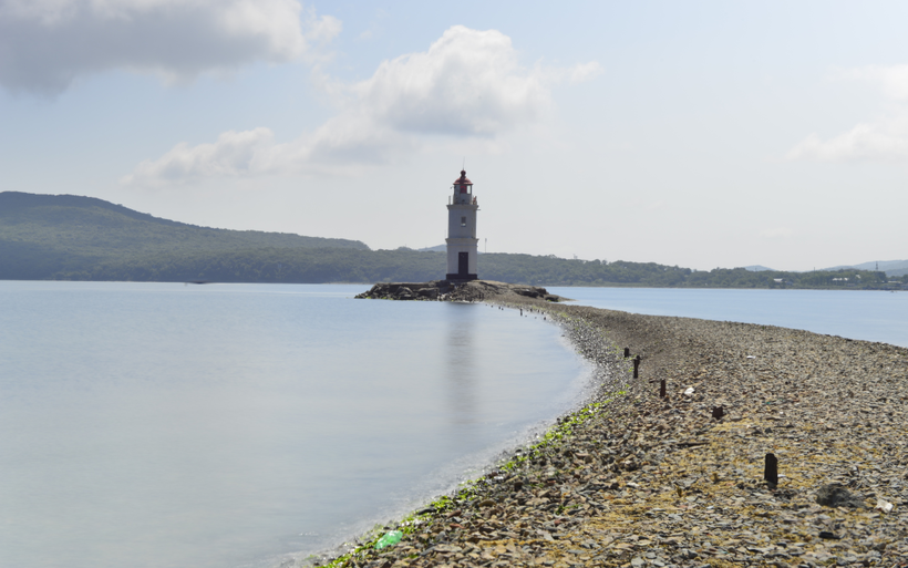 Однако маяк оказался расположенными на территории военной базы, куда вход туристам закрыт. Пришлось довольствоваться осмотром маяка Эгершельд на Токаревской каменистой косе.