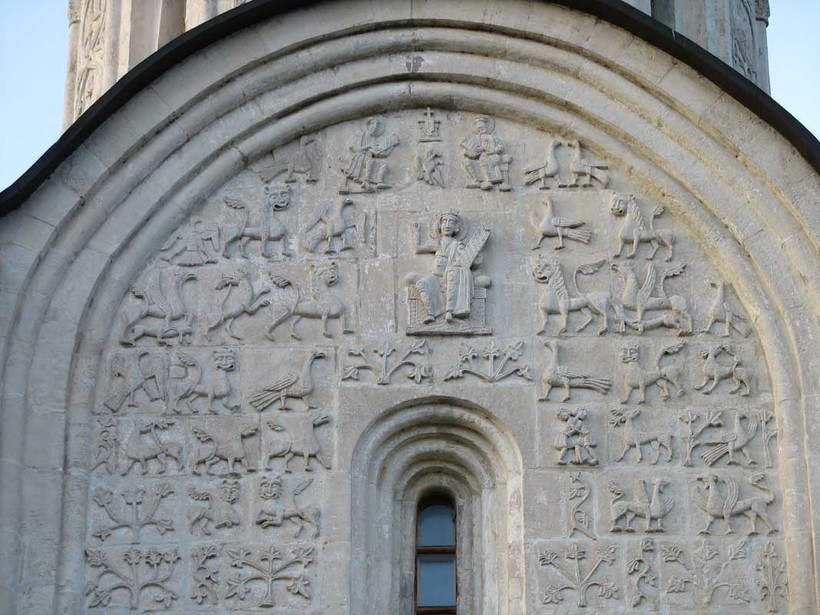 Рядом расположился не менее древний Дмитриевский собор, выстроенный также в конце 12 века. Часть фресок здесь была утеряна, ведь он неоднократно горел и был разграблен, но вот снаружи здание выглядит великолепно, мне нравится необычная отделка стен, подобной я нигде не встречала, будто отправляешься на машине времени в древнюю Русь.