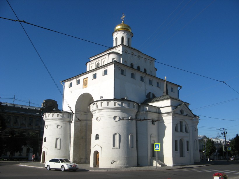 Знакомство с Владимиром я начала, естественно, с вокзала. От вокзала идут несколько троллейбусов, но, чтобы попасть в исторический центр необходимо воспользоваться только маршрутом №5. Знакомство с городом лучше всего начать с места, где восемьсот лет назад Владимир только начинался – это Золотые ворота. Уникальный комплекс-музей готов за небольшую плату распахнуть свои двери для туристов. В Золотых Воротах постоянно ходят экскурсии, и, так получилось, что я, заплатив только за вход, прибилась к группе, которую водил гид.