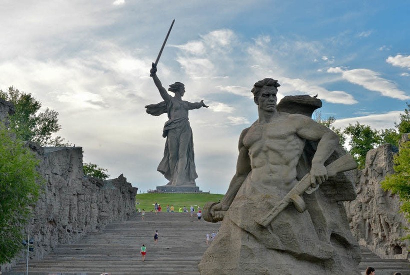 - Мамаев курган и «Родина мать» (Волгоград). Курган был насыпан во времена Золотой орды, и по легенде, там был захоронен военноначальник Мамай. Ну, а монумент "Родина мать" (женщина с поднятым мечом), известен во всё мире, наряду со статуей Христа в Бразилии.