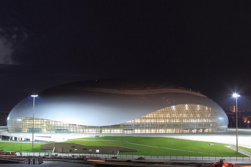 Вечером ледовый дворец напоминает светящийся космический корабль.