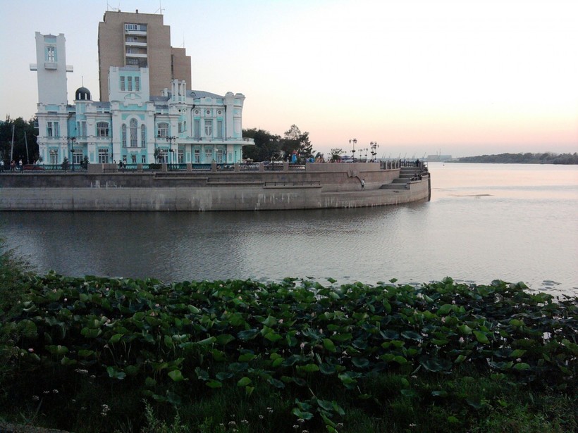 В конце Центральной набережной находится ЗАГС, поэтому я рекомендую вам дойти до него. Мало того, что вы увидите красивейшее здание, так ещё и цветущие лотосы. Правда, для этого нужно приезжать сюда в конце июля или в начале августа, когда этот цветок уже распустился.