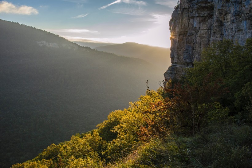 Начало октября в горах — удивительная пора. Буквально на глазах лес меняет свой цвет. Еще вчера он стоял зеленый, а сегодня по нему растекаются багряные пятна и лучики охры. Листья кружили над головой, опускались на землю, шуршали под ногами. От красоты захватывало дух!