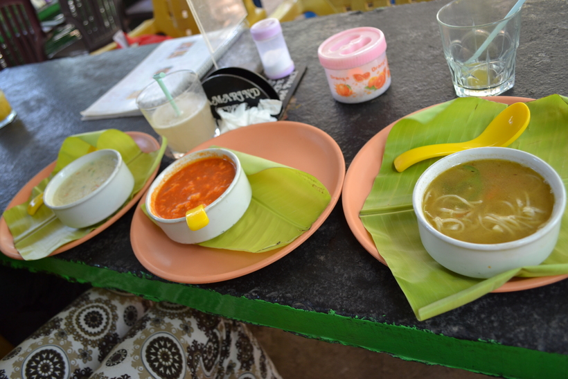 В ГОА огромное количество точек питания на любой вкус и кошелек. Существуют кафе для туристов и для местного населения. В кафе для туристов блюда максимально адаптированы для непривычных к местной пище желудков. Но и цены на порядок выше. В кафе, расположенных на пляже Палолем, а этот пляж один из самых дорогих, средний чек составлял около 250-300 рупий с человека без напитков. Стоимость фруктового фреша 80-100 рупий. К примеру, на пляже Ом, расположенном возле Гокарны, цены в кафе процентов на 20-30 ниже.
