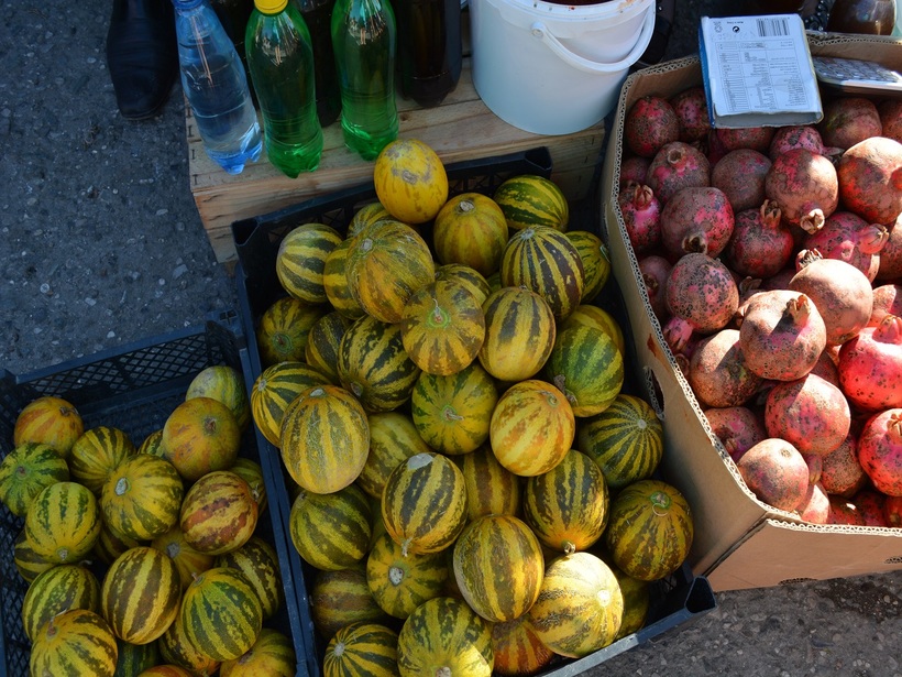 И, наконец, хочу сказать пару слов об абхазской еде. Именно здесь вы найдете на рынке фундук в сетке, который стоит при этом в разы дешевле, чем в России, именно здесь необычные фрукты, к примеру, скрещенная дыня с ананасом.