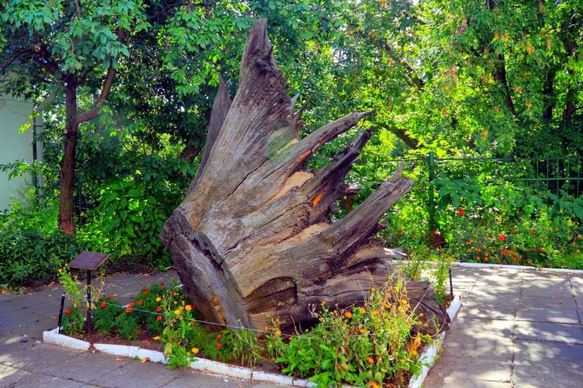 Еще один любопытный факт - возле Муромского музея лежит пень большущего дерева, и надпись возле него гласит, что такие огромные дубы Илья из Мурома вырывал с корнем. Правда ли это? Кто его знает!