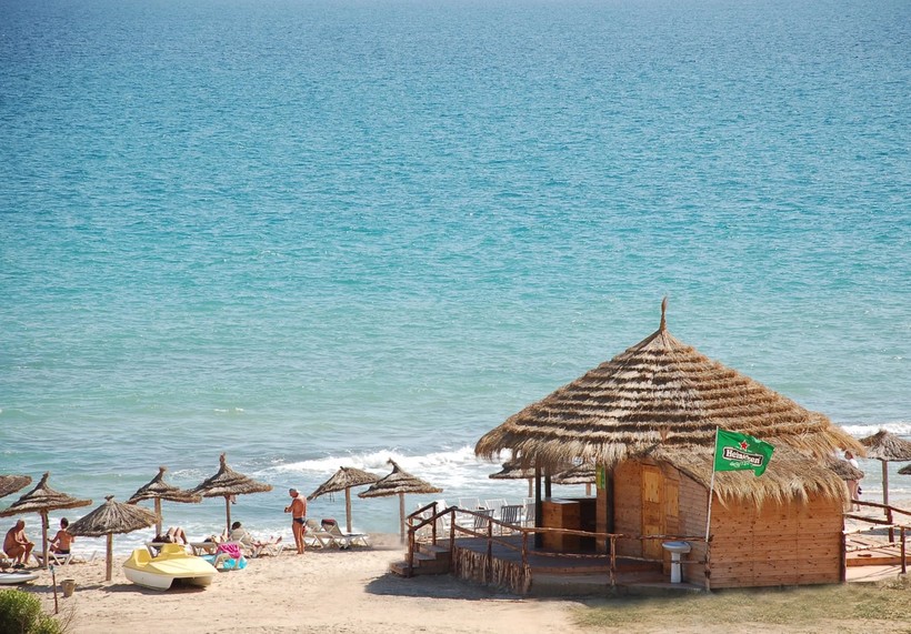 Средиземное море выше всяких похвал. Представляете, оно прогрелось до 26 градусов тепла. Вообще не хотелось вылезать из воды. Большую часть времени я проводила на пляже отеля, но иногда выбиралась покупаться на такие дикие пляжи, как Сиди-Мехрси и Маамура. Все пляжные зоны примерно одинаковые. Везде чистый песочек, прозрачное море, пальмы.