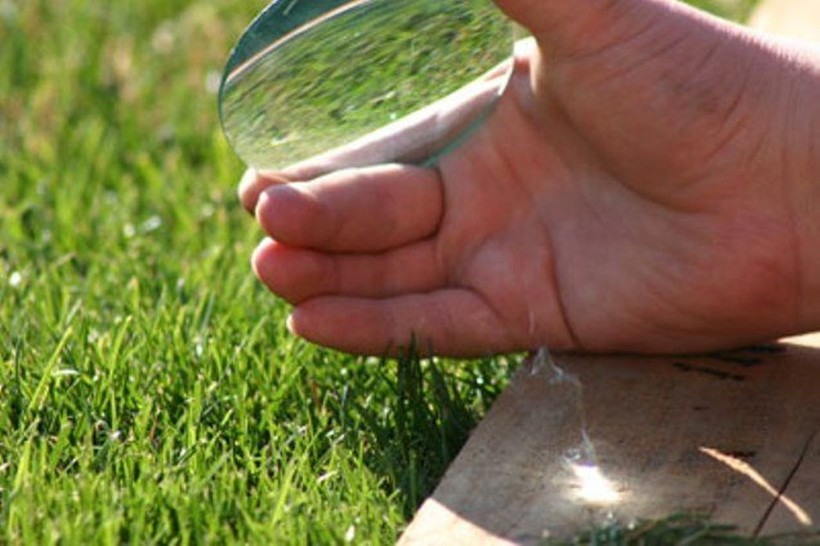 - Можно взять любую линзу, даже из очков и если на улице есть солнце, то нужно его словить линзой и направить на кусочек бумаги или сухой травы, как только луч солнца начнет греть, бумага загорится.