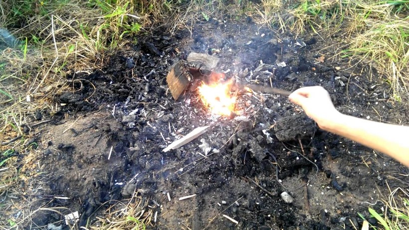 - А теперь мой экзотический способ. У меня с собой был презерватив. Слегка вытянув его, я наполнил его водой. Получилась хоть и специфическая, но линза. Важно: линза должна быть достаточно большой, чтобы световой луч был помощнее. Поймав лучик света, я направил его на скопление сухих травинок и пару найденных угольков. Примерно через 3 минуты пошел дымок, впоследствии мне удалось развести огонь.