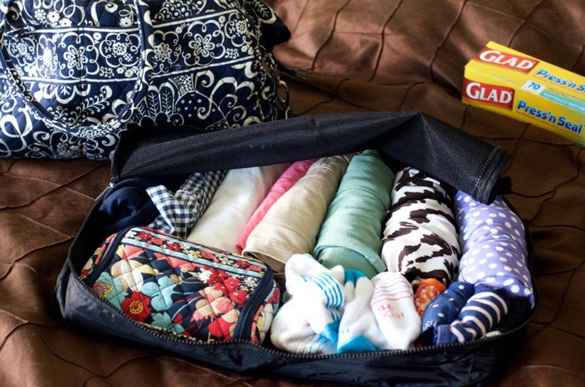 перед упаковкой плотно скручивать одежду в трубочку, а не складывать стопочкой;