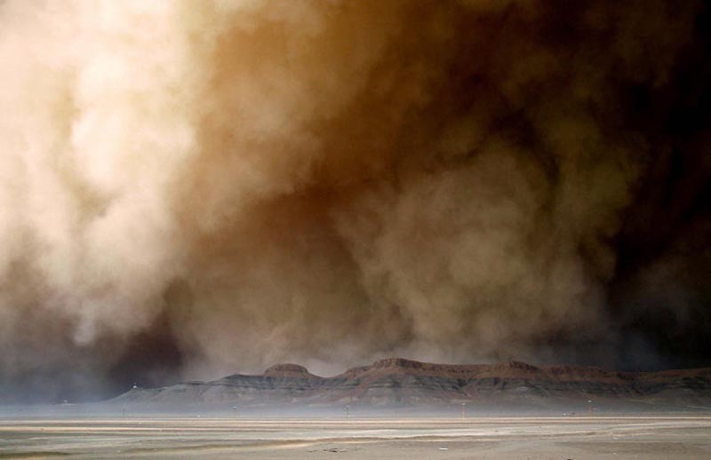 - Появившийся вновь ветер усиливается и несет пыль и песок.