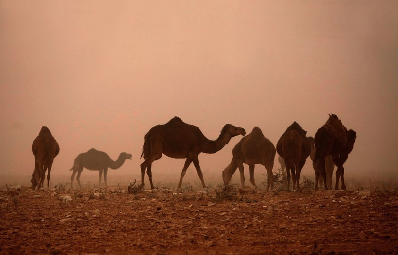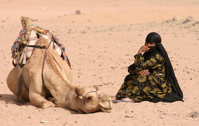 - Затем следует сесть и прижаться к верблюду с подветренной стороны.