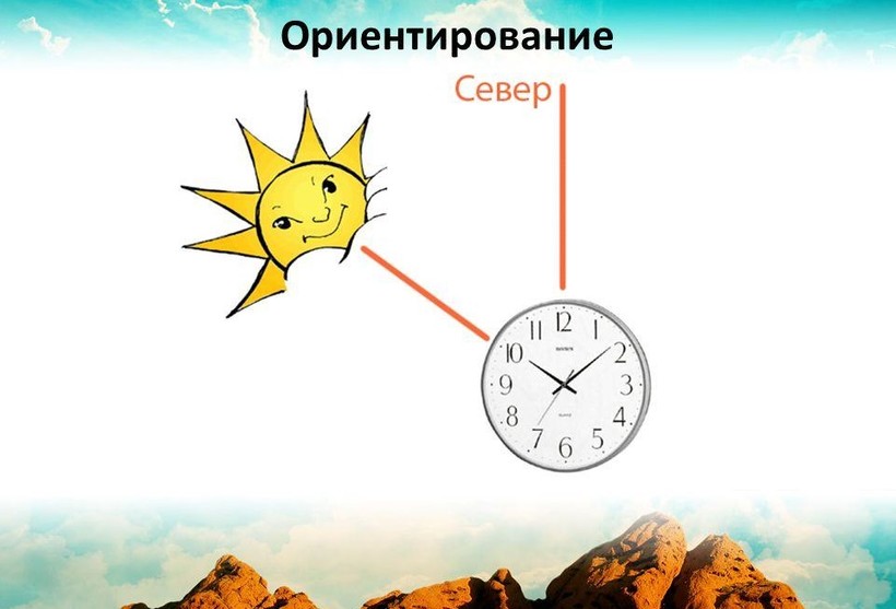 Лично я определяю всегда стороны света по обычным кварцевым часам. Нужно прицелиться часовой стрелкой на солнце и поделить пополам расстояние от стрелки до двойки (в зимнее время до единицы). Именно эта отметка покажет на юг.