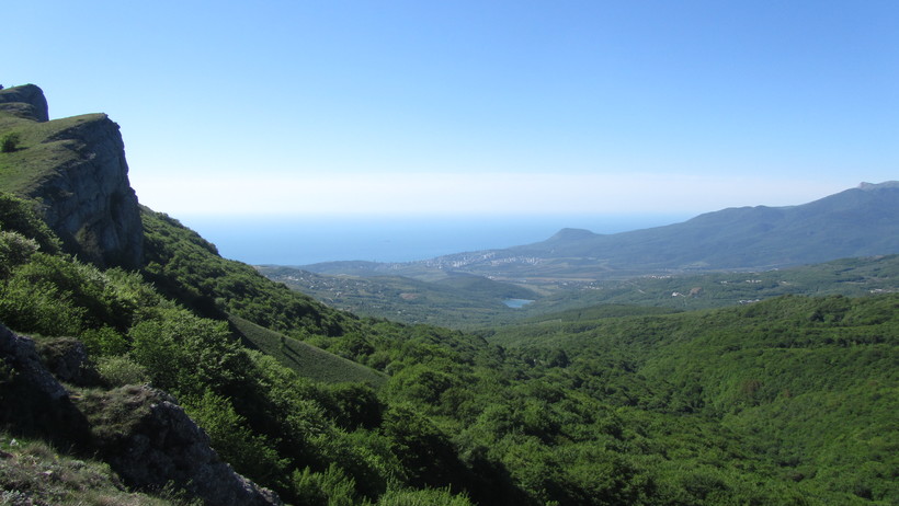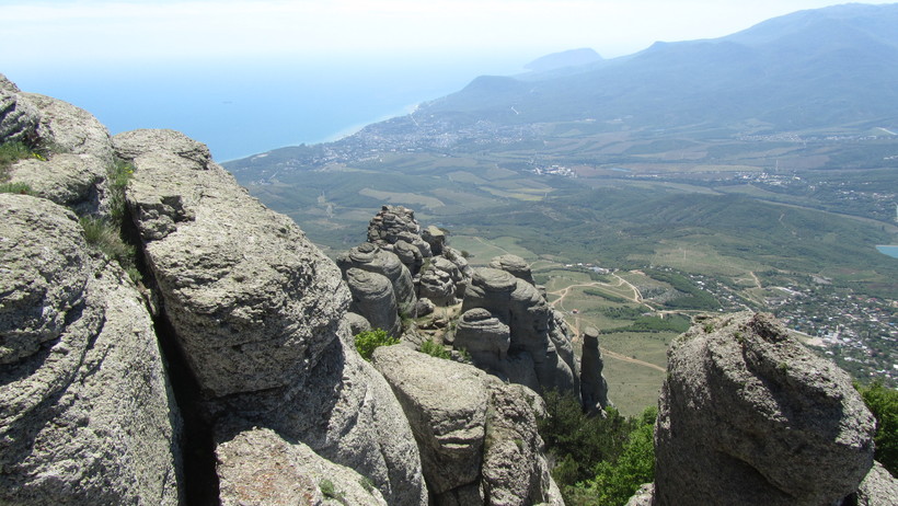 Затем забираемся на вершину горы Демерджи – северную часть плато. Следуем карте, идём через Южную Демерджи, любуемся видами на Долину Приведений.