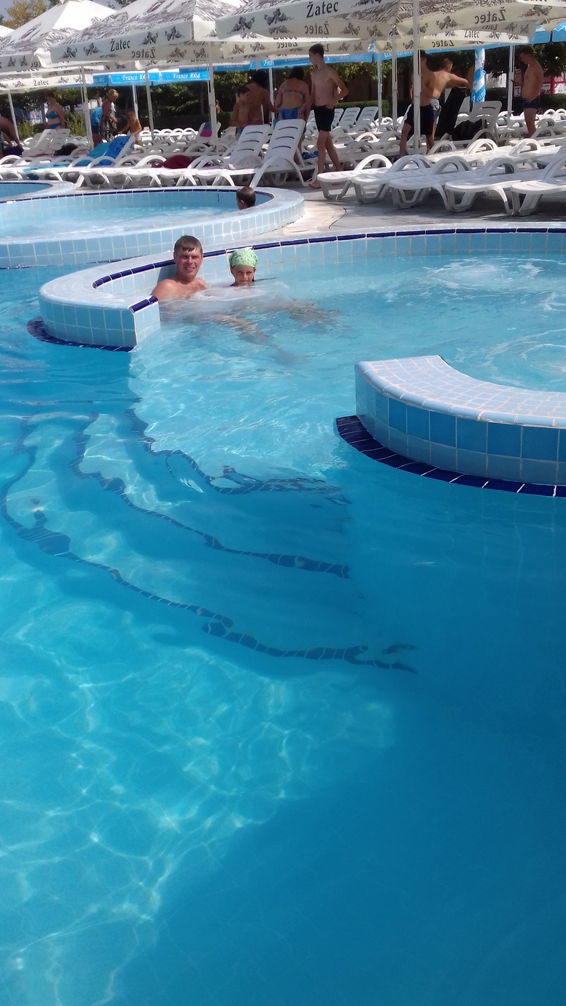 - Отдельно хочется упомянуть Бердянский аквапарк, вызвавший целое море позитивных эмоций у всей семьи. Но есть один момент, о котором хочется предупредить. Отдыхать можно либо целый день, либо полдня, либо час, два, три...Сразу хочу сказать, если собрались посетить аквапарк, не пожалейте денег, берите абонемент на целый день. Смысл в том, что с утра людей меньше, можно вдоволь накататься на горках, позагорать, поплавать в бассейнах, а через пару часов люди начинают подходить с каждым часом, такая там система. Проще говоря, если возьмете абонемент на час, по времени он будет последним часом перед закрытием аквапарка.