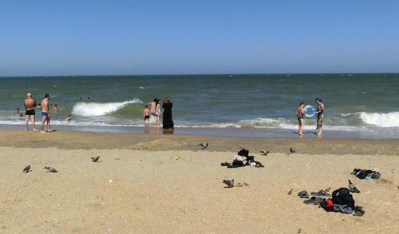 Особого наплыва туристов в мае на каспийских берегах не заметил. В основном, пляжи оккупируют местные жители. Одежду носят самую летнюю: