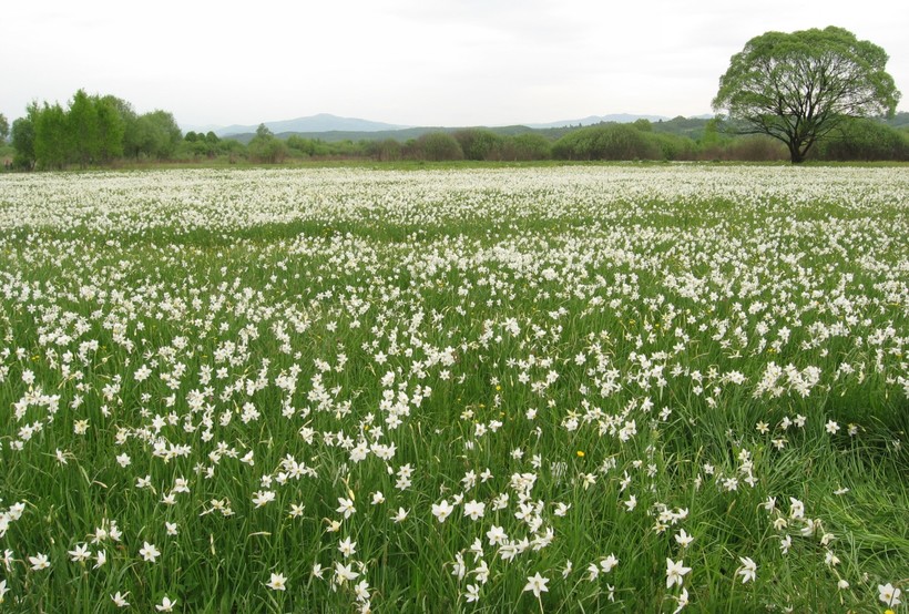 Однажды мне довелось увидеть самое настоящее маковое поле. Признаться, я теперь лучше понимаю изумрудно-городскую девочку Элли: дурманящего эффекта, по счастью, не было (видимо, из-за сильного степного колючего ветра), но ощущение пространства терялось совершенно. Горизонт скрадывало зыбящееся алое покрывало сотен крупных, но хрупких цветов, и на грешную землю меня вернул только раздавшийся вой шакалов. Пришлось вернуться в машину. Сегодня я поведу вас в очень похожее место, только вместо маков будут нарциссы. Вы ведь не против?