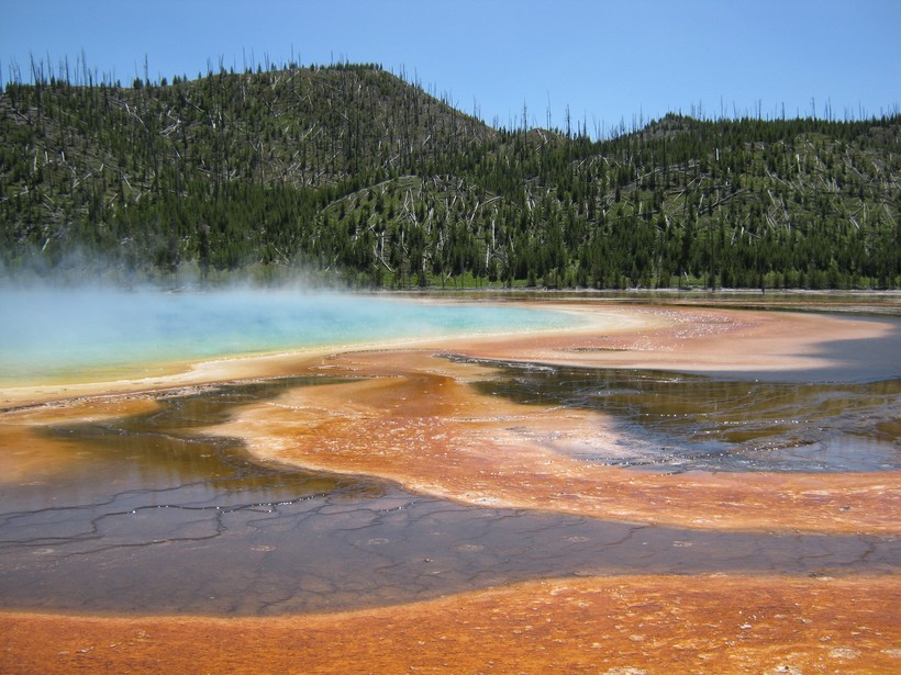- Йеллоустон, США. Здесь расположено большинство крупнейших гейзеров мира и две трети от их общего числа. Самые громадные - Гигант и Пароход. Второй, являясь самым большим гейзером на Земле, выбрасывает столб пара высотой до девяноста метров. Для сравнения: высота Статуи Свободы в Нью-Йорке составляет 93 метра. Всего в Йеллоустоне около трёх тысяч бурлящих бассейнов.