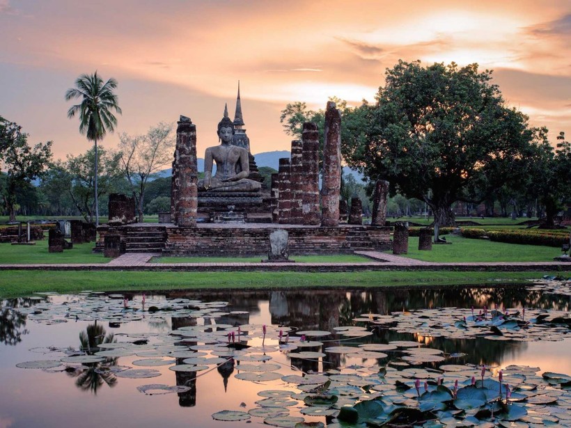 Тайское королевство Сукхотай было основано в 13 веке и просуществовало всего 150 лет. Сейчас его руины находятся на территории исторического парка, который можно обойти за день или объехать на велосипеде или тук-туке. Это место лежит в стороне от популярных туристических маршрутов, поэтому путешественники часто не знают, как добраться до Сукхотая, и отказываются от его посещения. На самом деле, всё просто. Мы приехали в Сукхотай из Чианг Мая на рейсовом автобусе, но можно доехать и с бангкокского автовокзала Мочит.