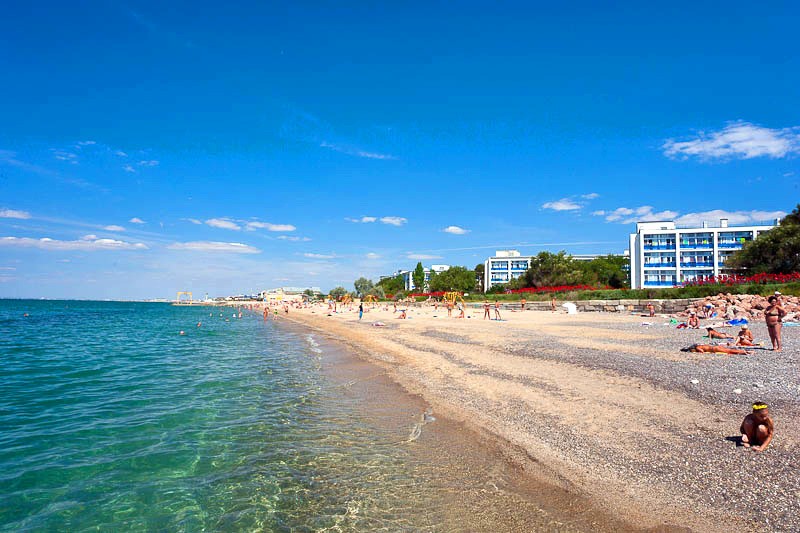 - Город Саки. Черноморское побережье Крыма. На находящееся в этом городе популярное лечебное озеро я ходила вместе с собакой. Никто и слова не сказал. Под растущими деревьями с маслинами пёся мог укрыться от солнца. А кто жаждет моря, то оно в 10 минутах езды от города. А с животными в автобус вас пустят без проблем.