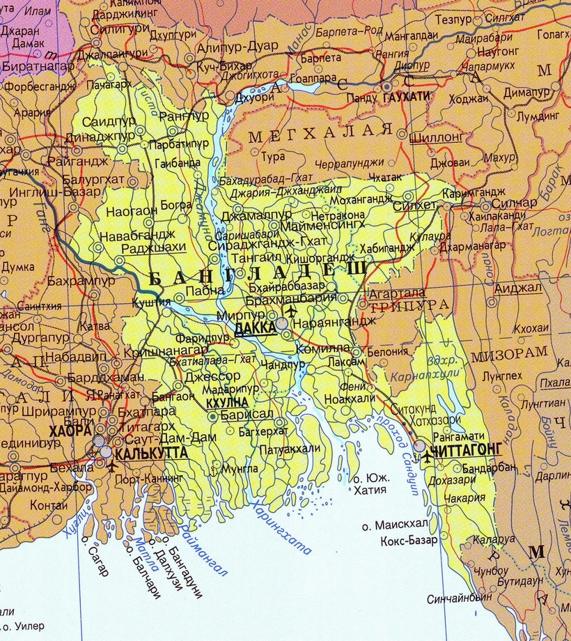 - через Бангладеш текут три реки: Ганг, Брахмапутра и Мегхна;